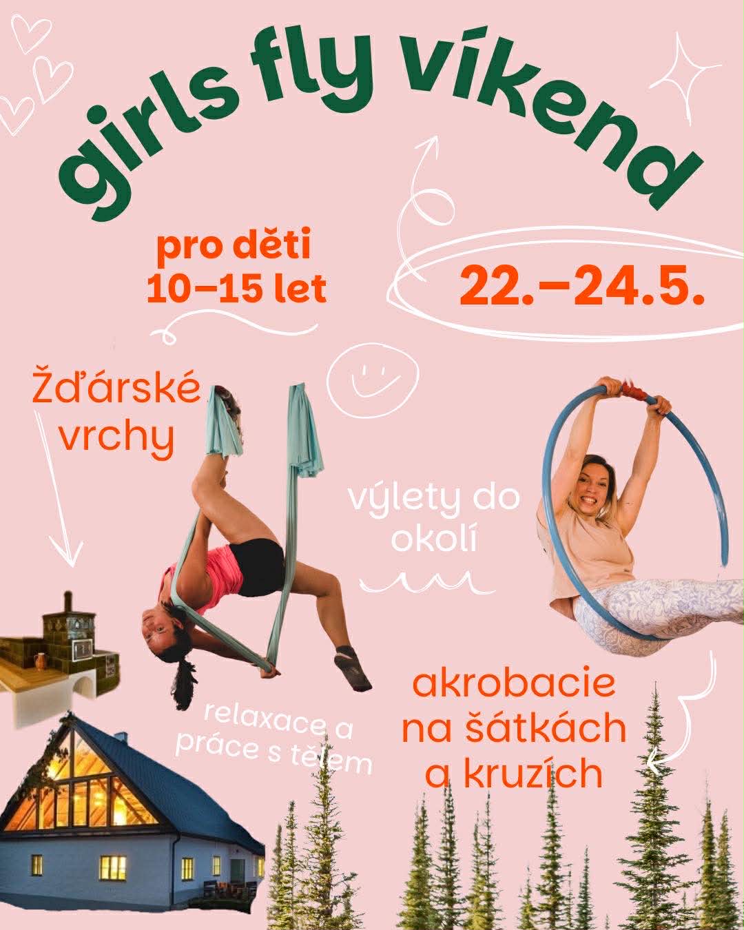 Ve spolupráci s Pohybárium Doroty Špalkové jsme si připravily víkendovou akci pro dospívající slečny s akrobacií na kruzích a šátcích, relaxem pro celé tělo i mysl, povídáním si a výlety po okolí.