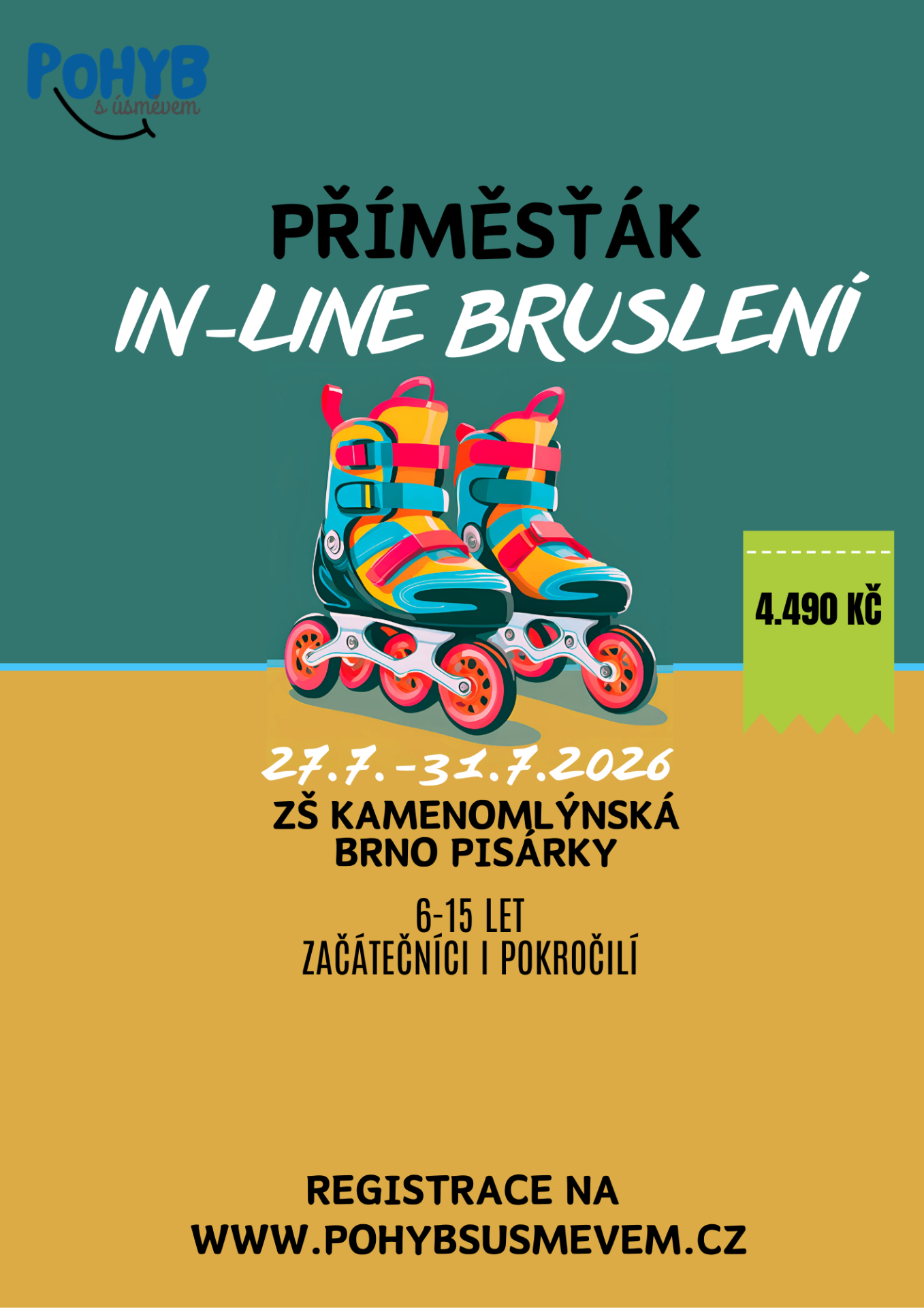 Příměstský tábor plný in-line bruslení, her a zábavy vhodný pro úplné začátečníky i zkušené bruslaře. V bezpečném prostředí se naučíme jezdit a hlavně brzdit (několika způsoby), potrénujeme celé tělo i mysl pomocí psychomotorických her a užijeme si spoustu zábavy.
